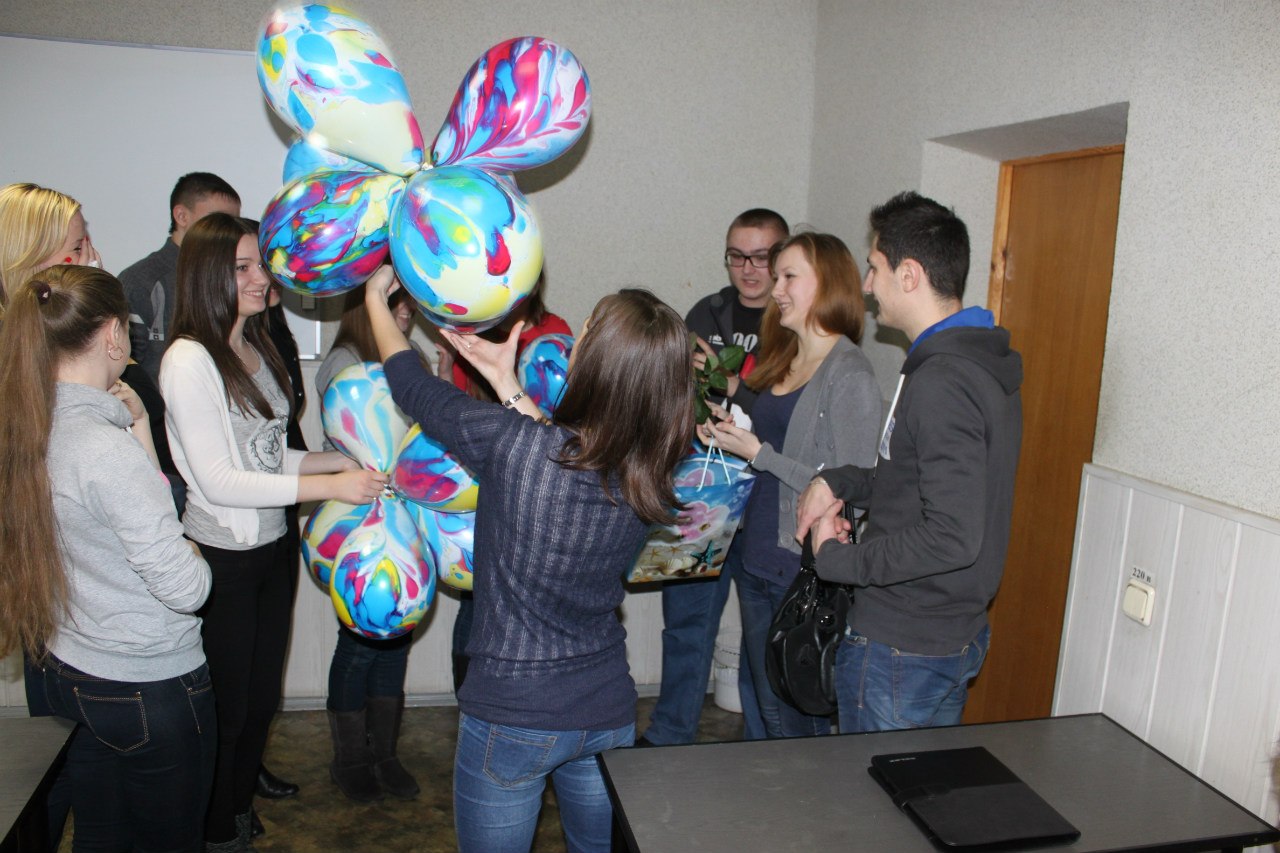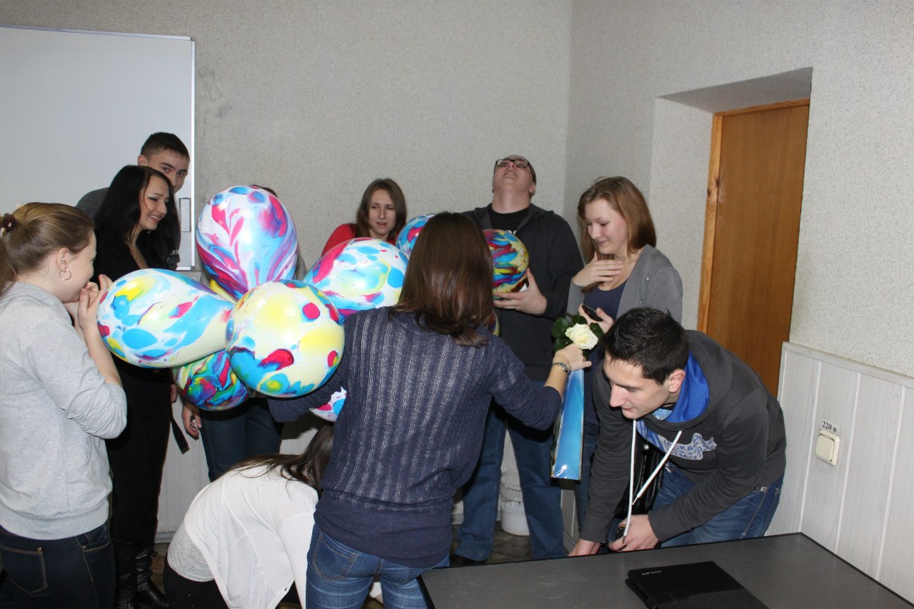 я там на заднем плане в сером свитере, поздравляем одногруппницу с днюхой. Меня там плохо видно, но главное заметны 3 вещи которыми я на самом деле горжусь (от скромности не умру) - рост, плечи и бритый чердак))) ;DDDD ( я дибил хД )
